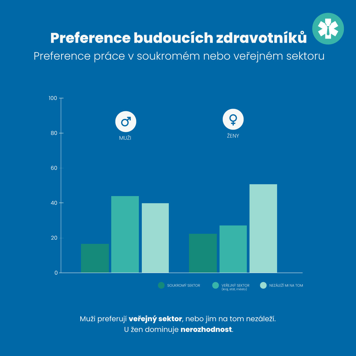 Mezi budoucími zdravotníky převládá preference práce ve veřejných zdravotnických zařízeních, i když více než polovina respondentů uvedla, že jsou v této otázce indiferentní.