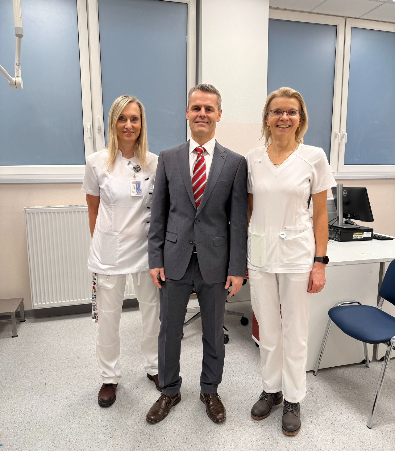 Připojuje se tak po Děčínu a Chomutovu ke zdravotnickému pracovišti zajišťující tento charakter zdravotní péče, jež se podařilo po stavební a technické stránce dostat na nejvyšší úroveň. Urgentní příjem v pavilonu F sloužil obyvatelům Teplicka od roku 2018. Jeho rozšířením a modernizací se ještě více zkvalitní a zrychlí péči o pacienty v teplické nemocnici. Všechny nemocnice Krajské zdravotní mají své urgentní příjmy zařazené mezi 120 prioritních po celé republice a řadí tak nemocnice Krajské zdravotní mezi páteřní síť zdravotnických zařízení z pohledu Ministerstva zdravotnictví a zdravotních pojišťoven. Slavnostního přestřižení pásky se zúčastnil i mimo jiné Mgr. Richard Brabec, hejtman Ústeckého kraje či MUDr. Tomáš Hrubý, generální ředitel KZ. Na fotografii níže ředitel teplické nemocnice MUDr. Martin Sessek, vedoucí lékařka MUDr. Lenka Kobrová a vrchní sestra Dita Viktora, MBA.