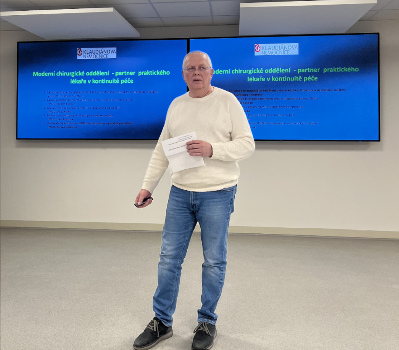 Klaudiánka ve spolupráci se ZPŠ uspořádala další odborný seminář pro praktické lékaře. Tentokrát byl na téma Chirurgie – s garancí primáře chirurgického oddělení Klaudiánovy nemocnice MUDr. Romana Kettnera. Ten na úvod informoval o aktuálním obrazu chirurgického oddělení, na něj navázal MUDr. Radim Karban s aktualitami, týkajícími se terapeutických přístupů ke karcinomu prsu. Současným trendům řešení problémů s kýlou se následně věnoval MUDr. Filip Hamtil, novinky z oblasti cévní chirurgie přiblížil téměř 50 posluchačkám a posluchačům MUDr. Jan Adámek a problematika kolorektálního karcinomu a spolupráce v této oblasti s praktickými lékaři byla obsahem přednášky MUDr. Tomáše Voborníka.