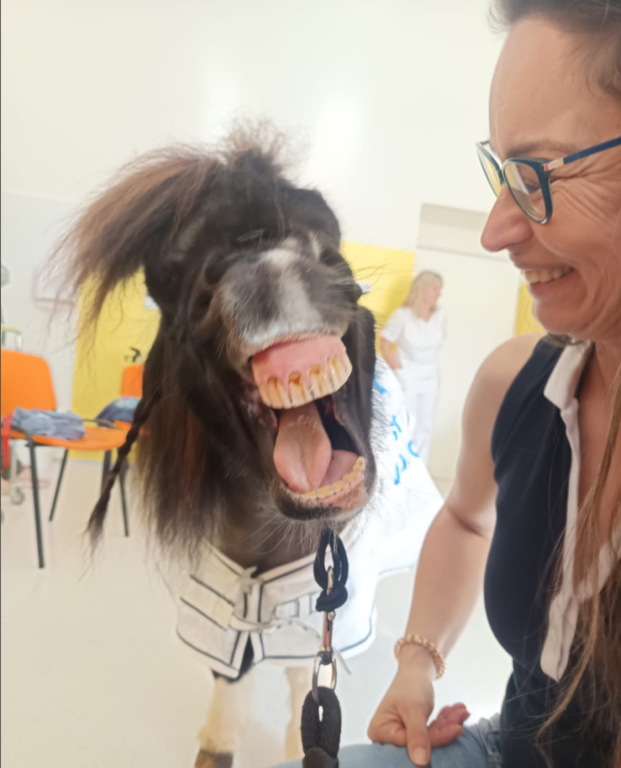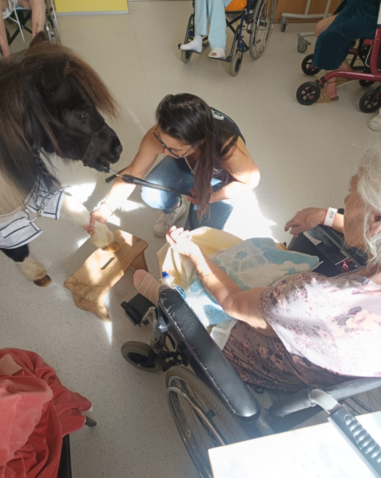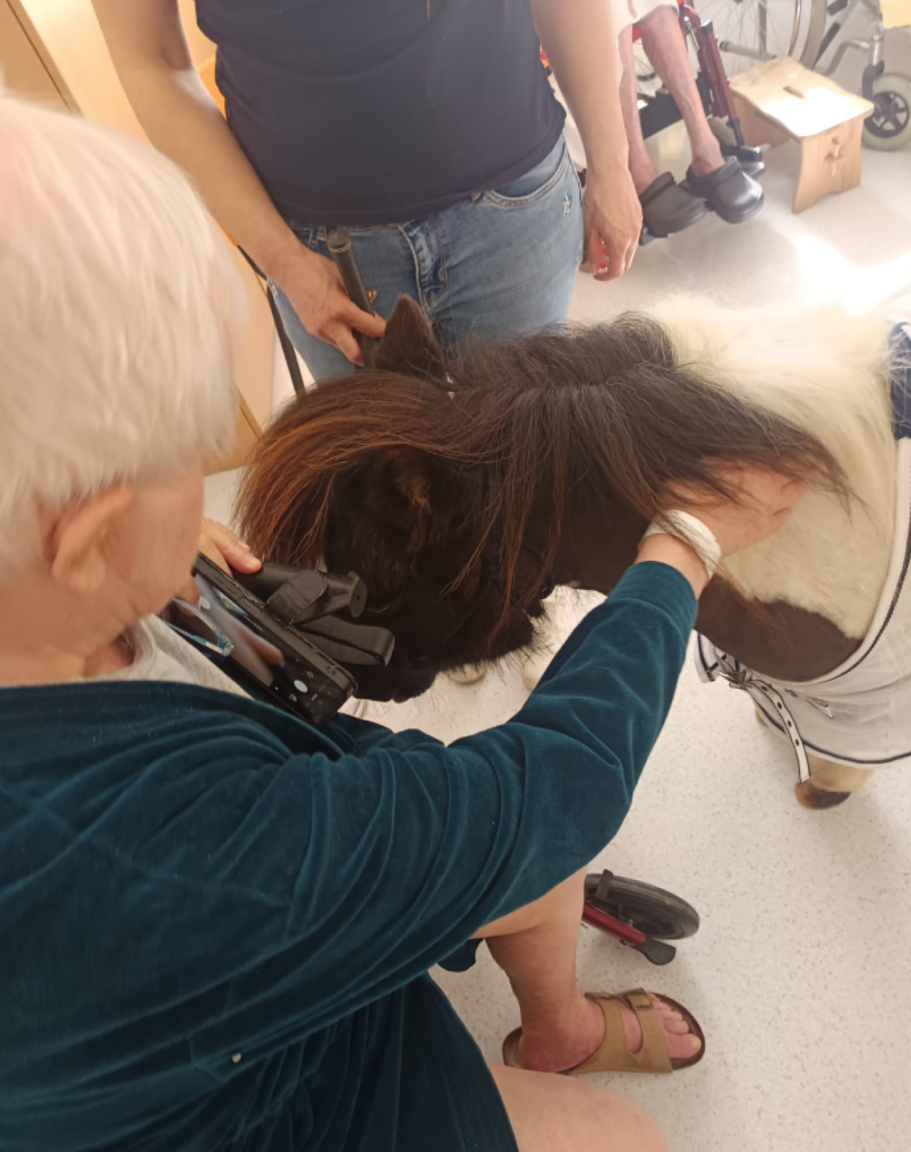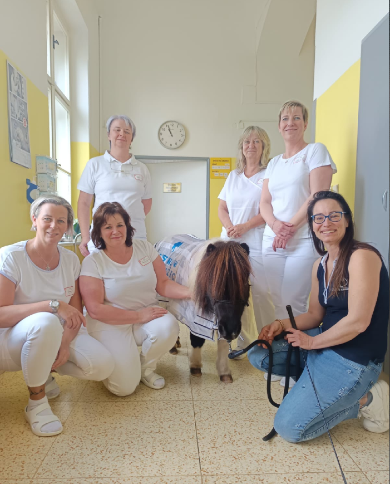 Radost a dojetí – to jsou hlavní emoce, které ovládly návštěvu poníka Eli v Oddělení následné péče v Mnichově Hradišti. Klisnička je sice malinká, ale o to větší lásku dokáže pacientům rozdávat. „Naši pacienti si její návštěvu vždy užívají. Byla to opět dojemná a emotivní návštěva,“ dodává koordinátorka dobrovolníků Zuzana Kaftanová. Ta před několika lety navázala úspěšnou spolupráci s organizací Asistenční jednorožec. Díky těmto návštěvám byla rozšířena zooterapie v Klaudiánově nemocnici nejen o poníka, ale i o návštěvy koně u pacientů. Dnes Dobrovolnické centrum nabízí kromě canistýmů (dobrovolník se psem) a hipoterapie také takzvanou kuniterapii – tedy terapii králíkem.