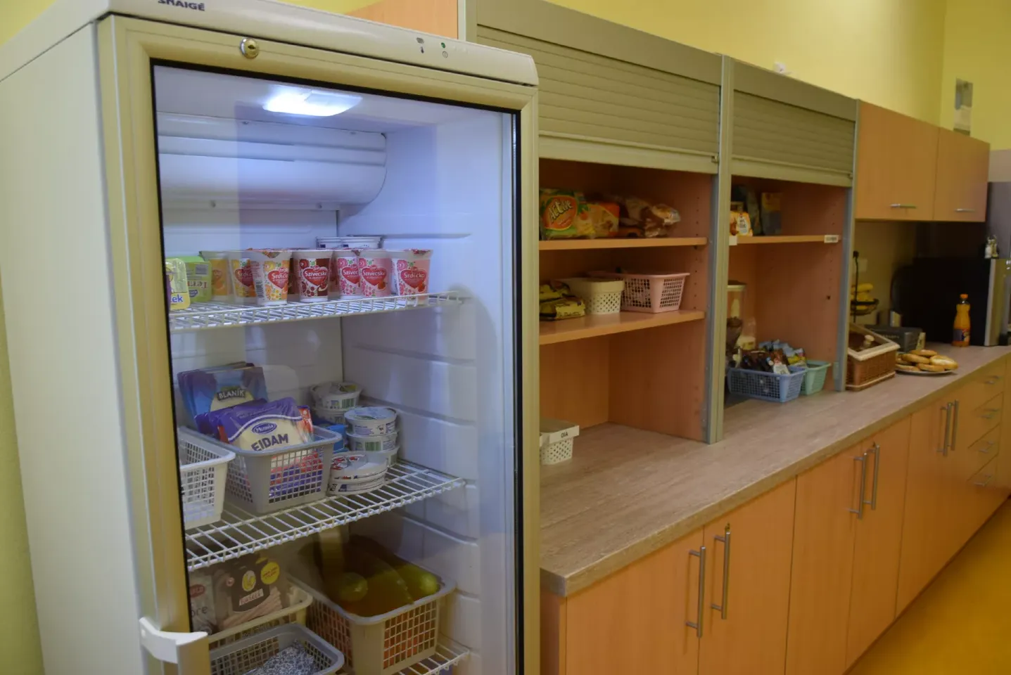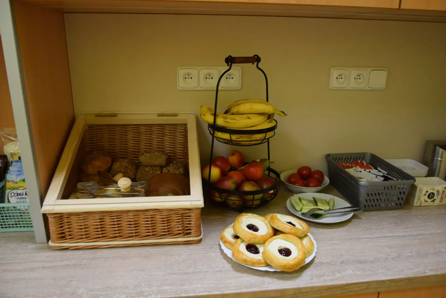K dispozici je bílé i celozrnné pečivo, müsli, sušenky, sýry, šunka, jogurty. A to vše i bezlaktózové, bezlepkové či dia. „Bufet“ chtějí sestřičky maminkám ještě vylepšovat, například pořídit smoothie mixér nebo toustovač.