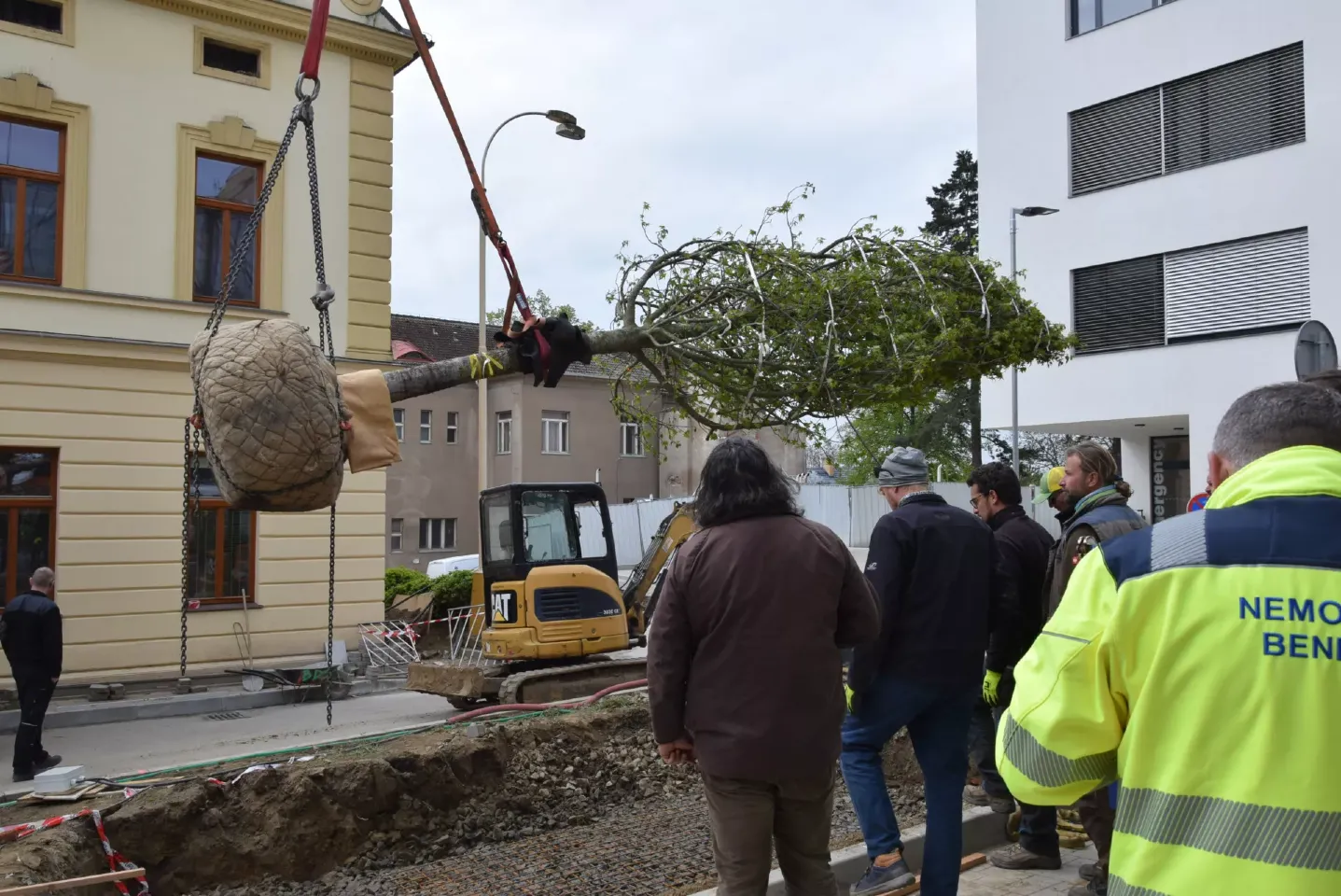 U nového centrálního vstupního pavilonu nemocnice v Benešově vysadili krásné nové stromy - cedr či platan