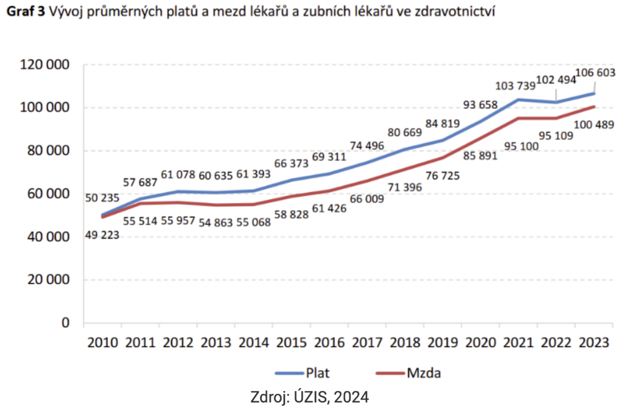 V českém zdravotnictví přetrvávají genderové rozdíly v platech. V roce 2021 vydělávali muži lékaři v průměru o 20 000 Kč víc než ženy lékařky. Problém je způsoben především mateřstvím, během kterého ženy zpomalí svůj postup platovými tabulkami na několik let a tuto ztrátu už do konce svých kariér dohánějí jen ztěžka. Tento problém si nepochybně zaslouží pozornost do budoucna.