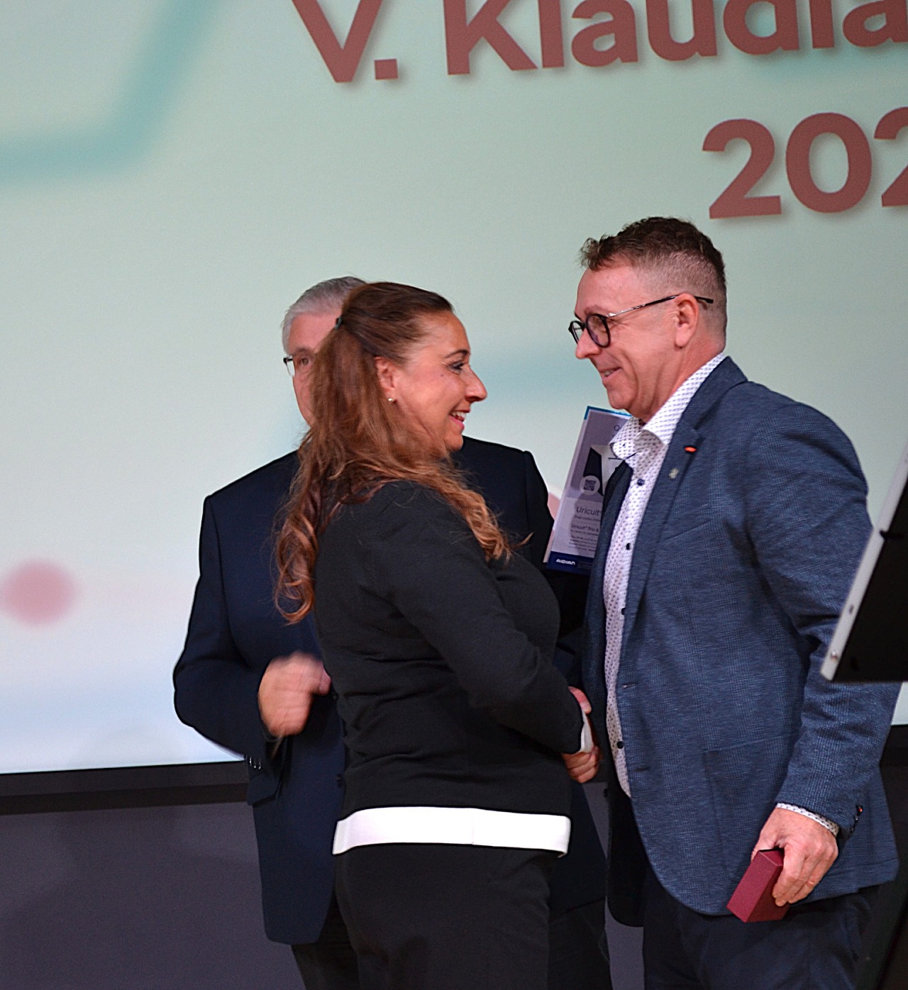 Klaudiánova nemocnice v rámci tohoto kongresu pravidelně oceňuje také své zaměstnance za celoživotní přínos pro pacienty nejen této nemocnice, ale i regionu. Letos Klaudiánovu medaili z rukou předsedy představenstva JUDr. Ladislava Řípy a hlavní sestry Bc. Aleny Bulíčkové získali bývalý primář urologie MUDr. Richard Pabišta a nemocniční ombudsmanka Jana Truksová.