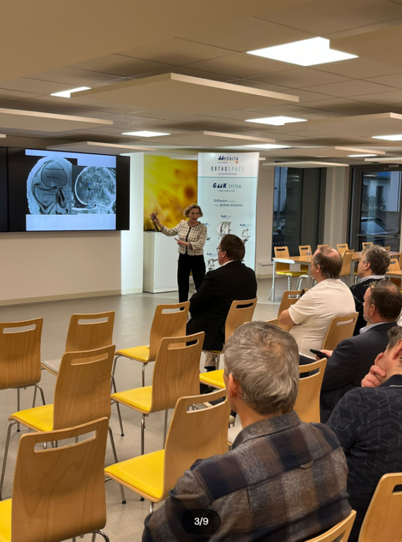 Jiří Sokol Sales Manager Cz & Sk z firmy Orthospace/ Medacta představil kolenní implantát GMK Sphere navržený k zajištění maximální funkční stability a přirozenějšího pohybu kolene.