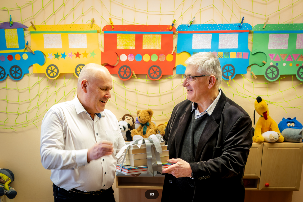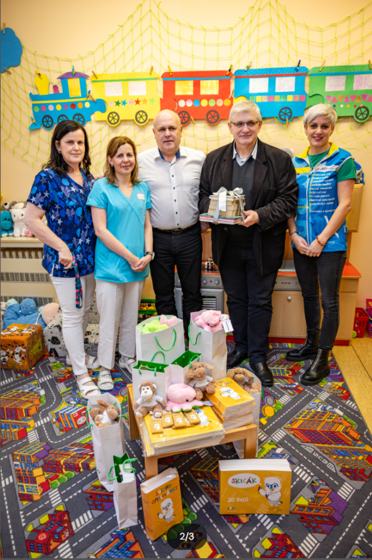 Na podzim loňského roku zaměstnanci firmy Ško-energo v rámci celofiremního dobrovolnictví sbírali knihy pro naše pacienty. Podařilo se jim nasbírat téměř 200 knih a časopisů pro děti i dospělé. V pátek se sešli zástupci firmy Ško-energo s vedením nemocnice, zaměstnanci dětského oddělení i s pracovníky Dobrovolnického centra. Knihy předali společně s dalšími propagačními předměty ŠKO-ENERGO za účasti jednatele firmy Tomáše Kubína a předsedy představenstva Klaudiánovy nemocnice Ladislava Řípy.